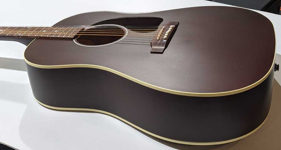- Basses moins puissantes que sur la J-45 Standard (volontaire avec le corps plus fin).